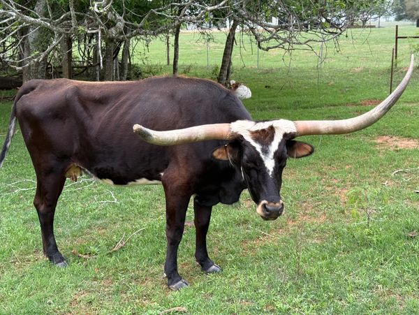 Ruby Red is a very special heifer. She was the first heifer born on our ranch, a daughter of our Uncle Bernard's herd sire, BL Rio. She has beautiful facial markings, and has now had a couple calves of her own, providing our first 3rd generation cows for Cardinal Cattle Co.