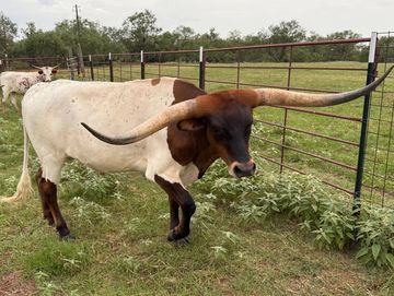 Freddie is an unregistered Texas Longhorn. One of the first four steers we put on our ranch, Freddie was named for Freddie Steinmark. His horns have great length and shape.
